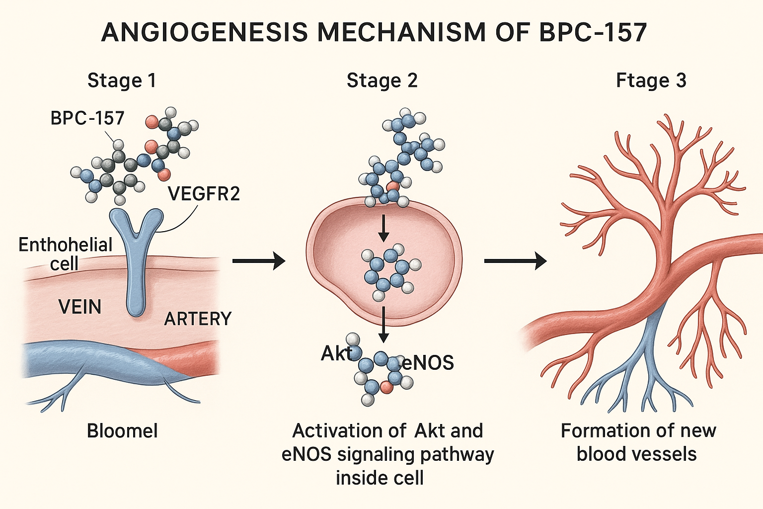 One of BPC-157’s most powerful mechanisms is its ability to promote angiogenesis—the formation of new blood vessels. This is crucial for healing because: